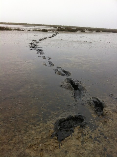 Wee little channel running through the marsh shown on the left. On the right, you see one of my more on point field looks. Hiking boots, soccer socks, running tights. Kids, this is what happens when you refuse to do your laundry.