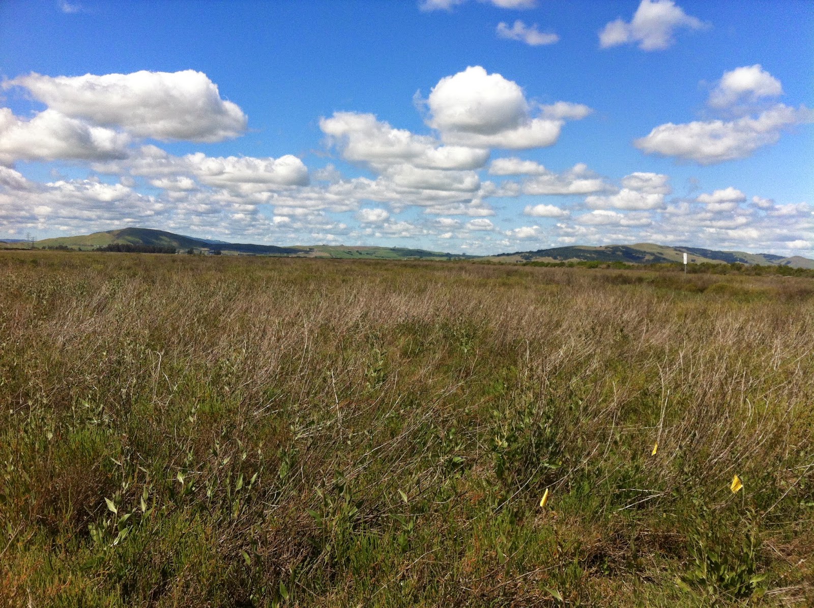 Not a bad place to hike through to get to work. There is a big’ol marsh right on the other side of that rise. Coyote Brush in the foreground.