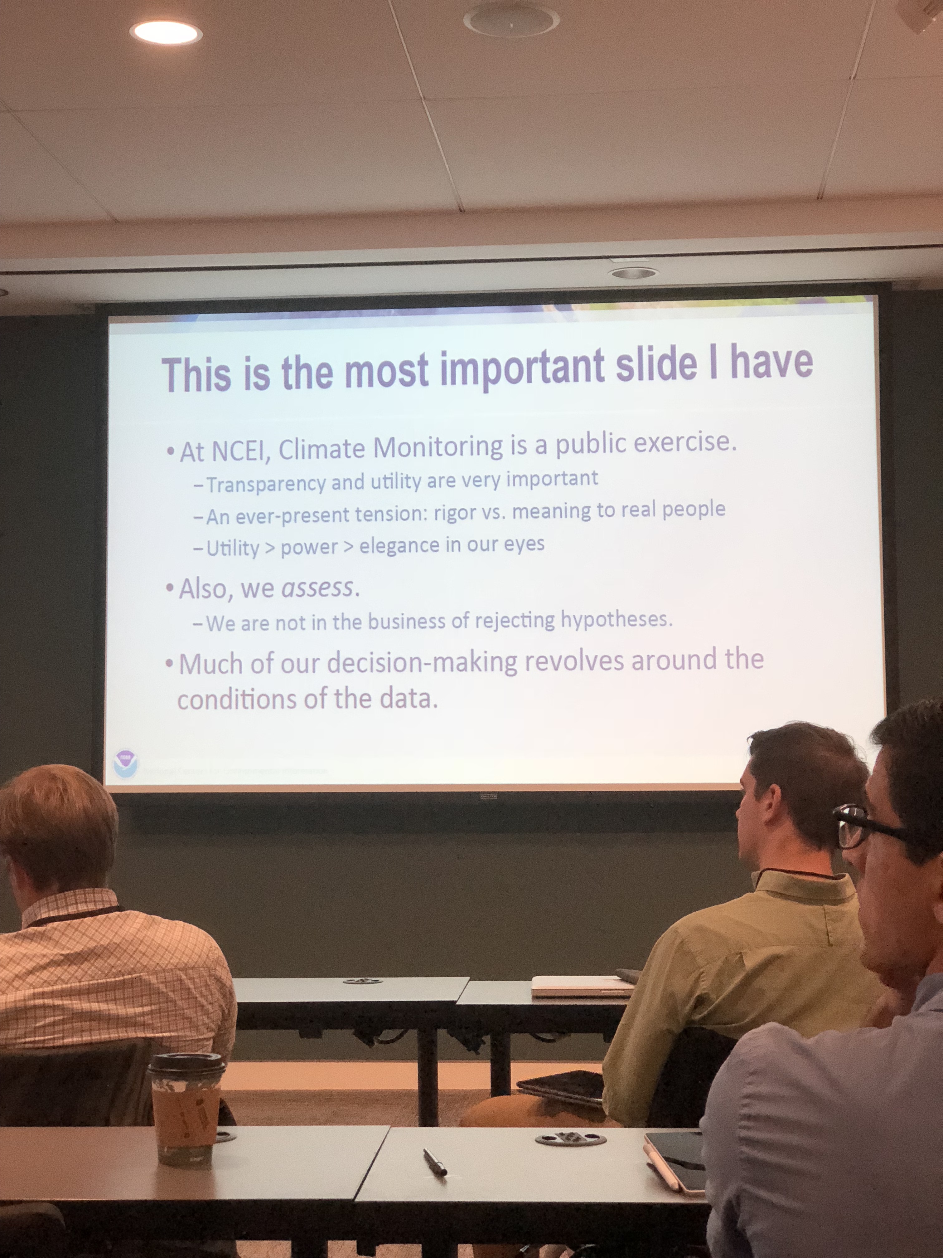 The rest of the conference was two days densely packed with 30 minute invited talks. These talks covered a wide range of topics from climate monitoring to spatial population processes. Most of these talks were presented by professors and researchers (i.e. not graduate students) and varied in technical difficulty. I certainly didn’t retain much of the information presented in these talks, but it was useful to get a feel for the current state of research and think about what sort of path Future Meridith might take after finishing her PhD. Check out a few of my favorite slides!
