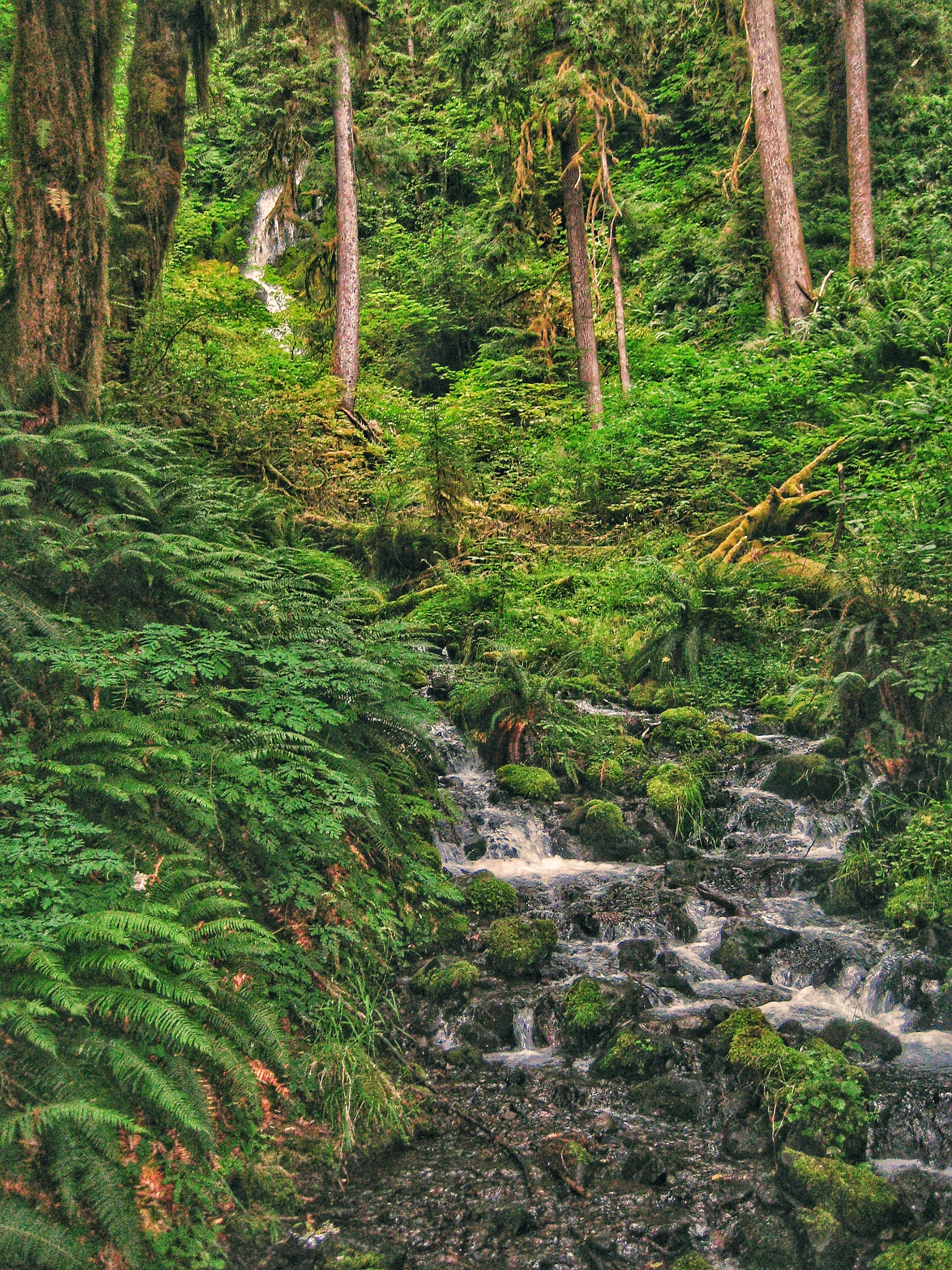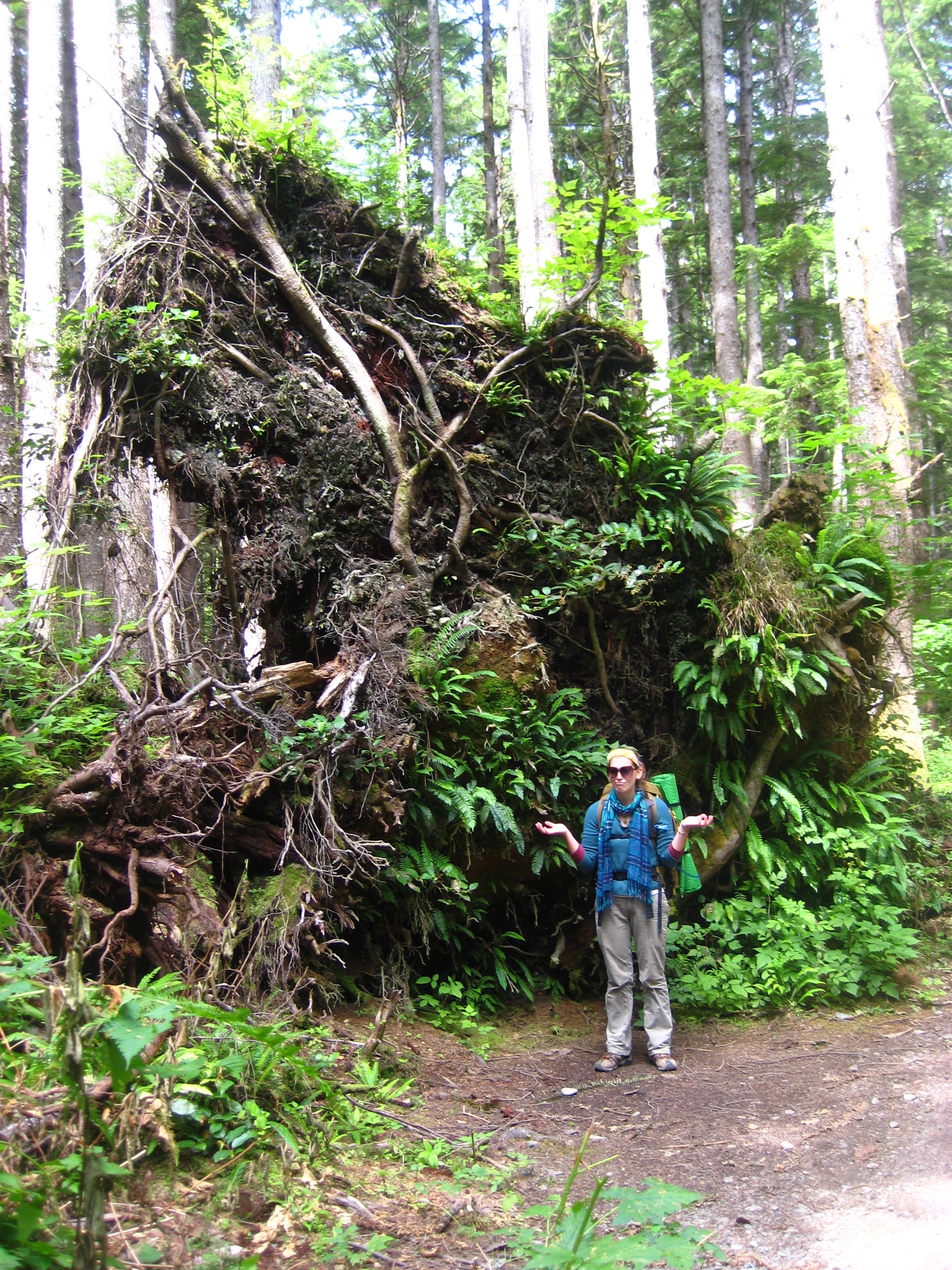 The next morning, we woke up early and broke up camp. Temperate rainforests are incredibly beautiful and unique ecosystems. This area gets 12 feet (yes, feet!) of rain each year. It drizzled a bit on us, but walking along a damp trail through the tall trees and carpets of ferns and moss was one of the best ways to spend the morning.