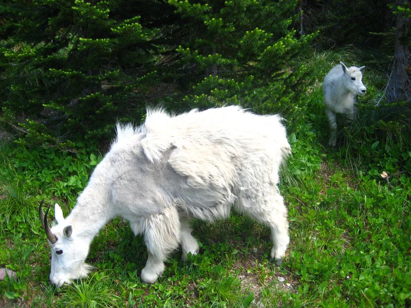 Established in 1910, this American half of the Waterton-Glacier International Peace Park is the jewel at the top of the US stretch of the Rockies. Rachel and I had made it from just miles from the US/Mexico border to a park nestled up against the Canadian edge. We were stoked to see some glaciers straight away, but were saddened to learn that it is harder than one would expect from the park’s name. We would have to drive back out of the park and up to another road into (but not through) the park if we wanted the chance to see some. Not ones to spend the day driving around the parks instead of hiking about we struck out on a trail to Hidden Lake from Logan’s Pass. The stellar views of the area only became more and more spectacular as the trail continued, and eventually we began to spy the critter that has become synonymous with the park. The mountain goat.