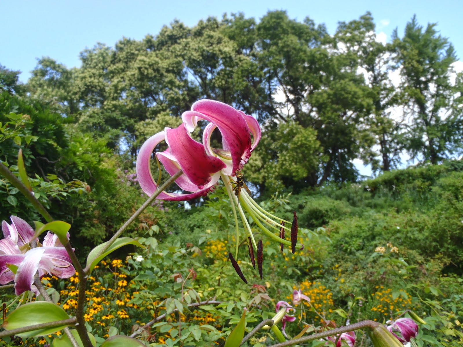 Probably the coolest thing we saw in the gardens was this amazing piece of art. This sculpture was called “Sandy Remix” and it was made mostly from garden trees killed during Hurricanes Sandy and Irene. The trees are arranged to look like a swirling hurricane, and you can walk up into the tree house and, thus, into the eye of the storm. The informational sign not only gave information about the art, but the importance of climate change and its impacts. It was a very powerful experience, and a wonderful monument to remember the storm.
